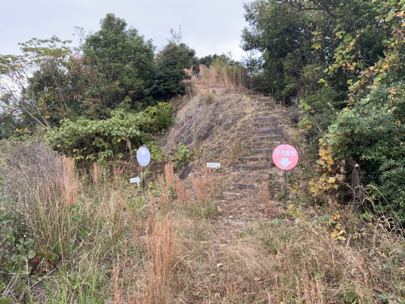 すぐ近くに階段がありますが、「一方通行」「下り専用」らしいので、ぐるっと反対側へ周り登っていくと…