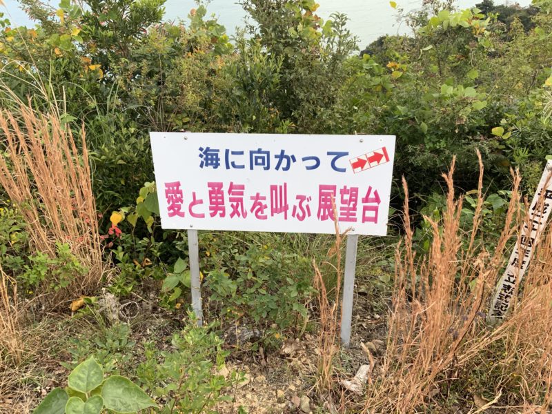 このお堂の前の道をまっすぐ進んでいくと「愛と勇気を叫ぶ展望台」にたどり着くそうですが……。
