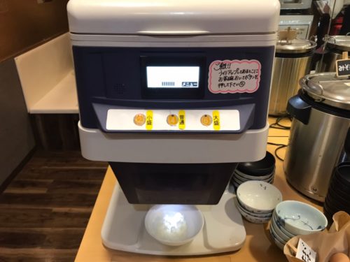 小盛・普通・大盛を選んでボタンを押すと、シュッと落ちてくるご飯、楽しいです。