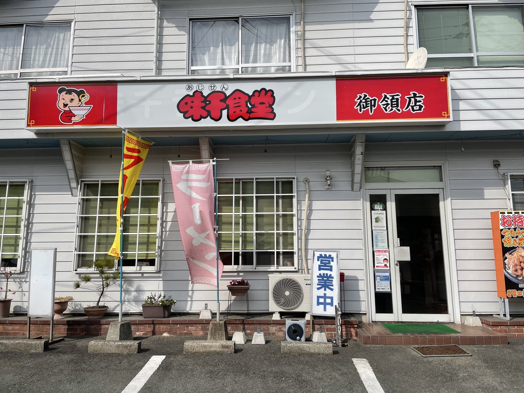 味千ラーメンのチェーン店でありながら、独自の定食メニューが楽しめる味千食堂。御領店はホルモンが自慢らしく、煮込みホルモンと焼きホルモンの定食があります。