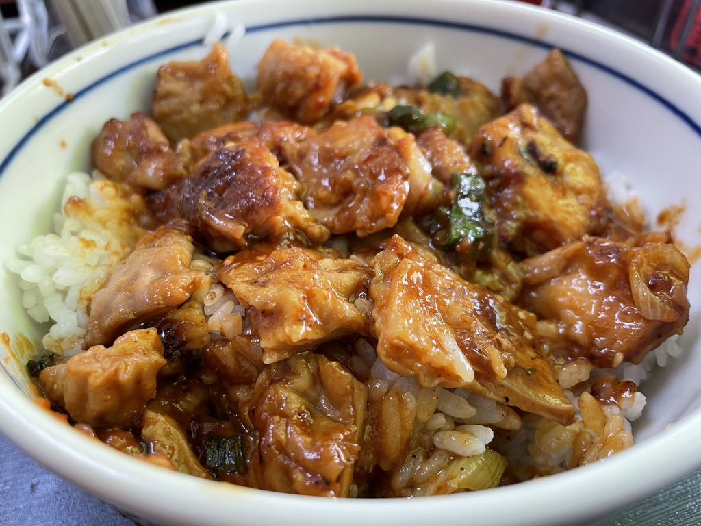 しかも丼の方は、ピリ辛にタレが仕上げてあって、益々ご飯がススムくんになります。