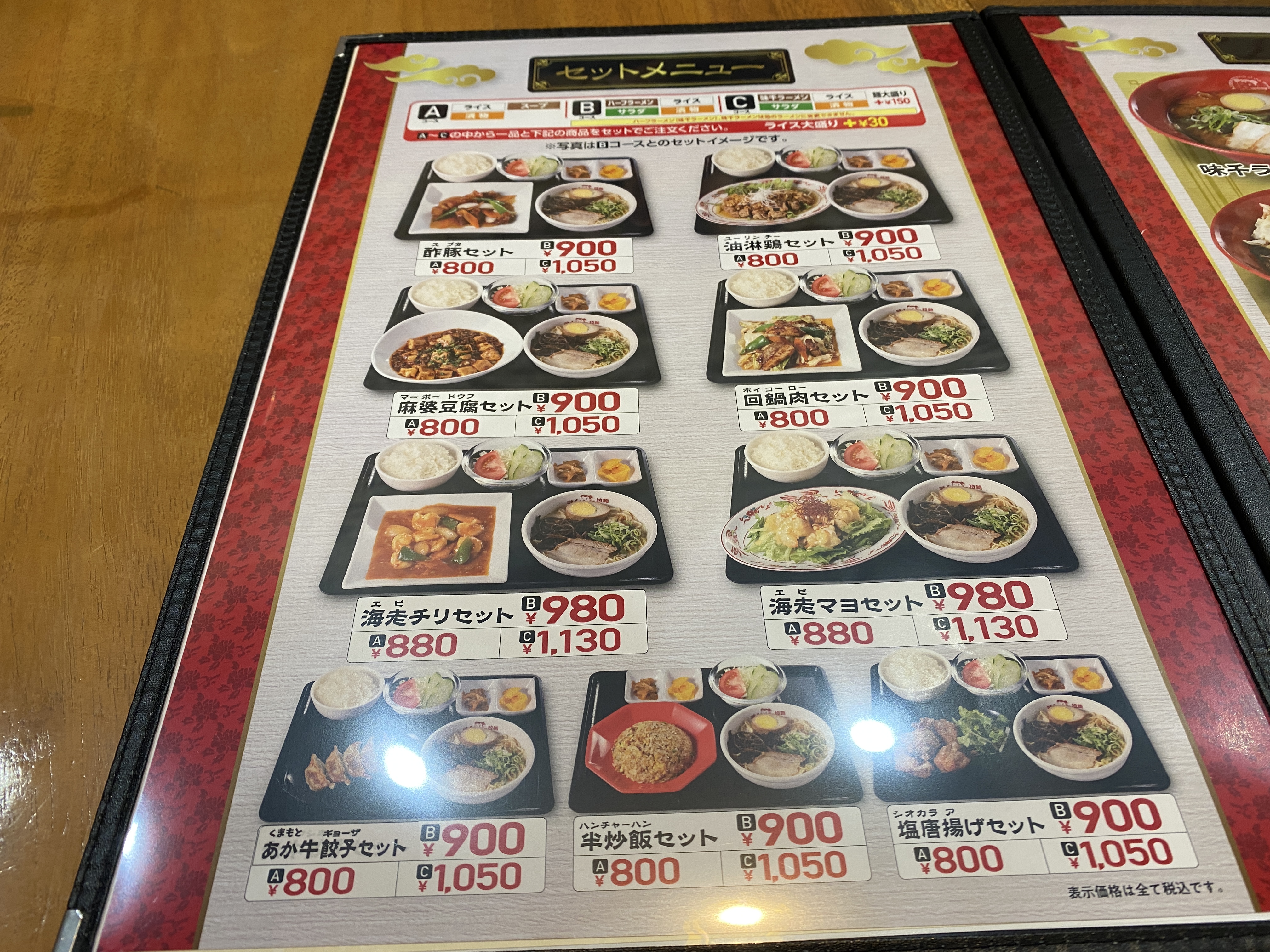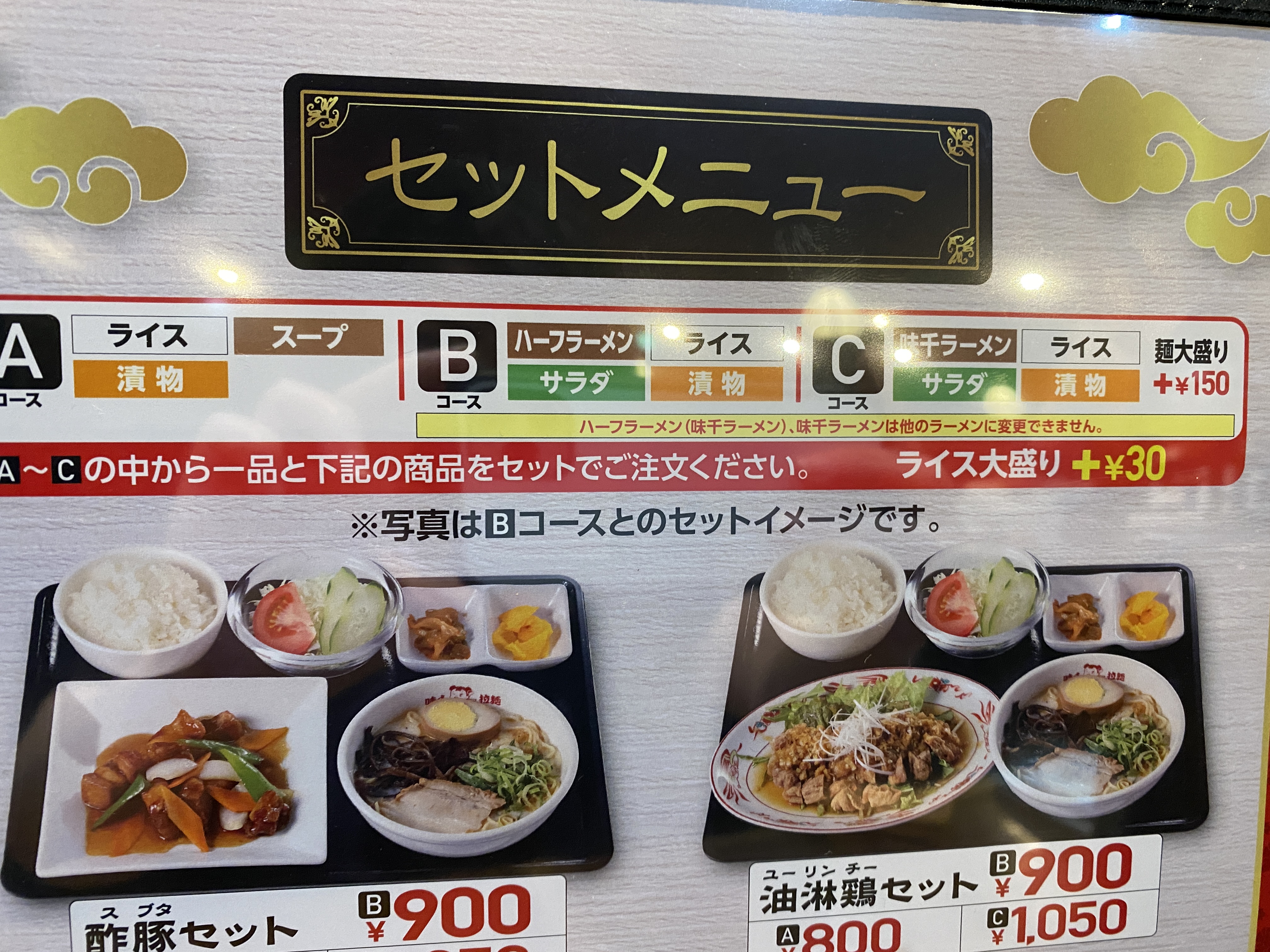 おかず系を楽しみたい!って方はBセット、いやいやラーメンありきやろって方はCセットと使い分けできそうです。