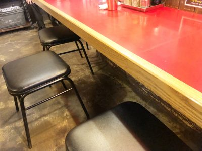 店内はカウンター席とテーブル席に分かれています。外観と同じく、赤を基調としており、かわいらしいです。