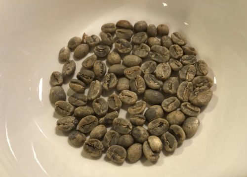 焙煎する前の豆「生豆」。色も黄色っぽくて大豆みたいです。この量で大体4杯分くらいだそう。