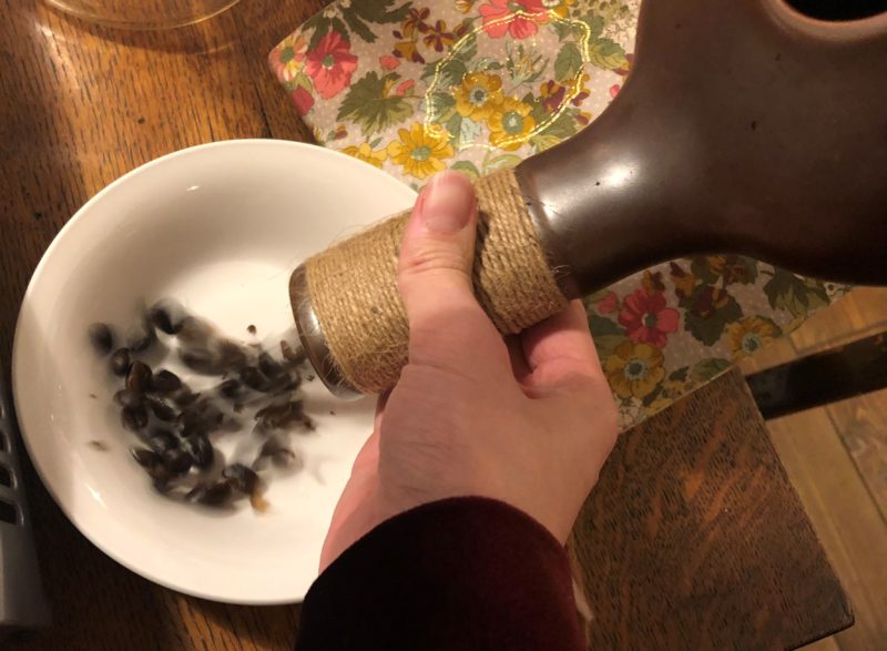 焙煎した豆を冷まして、早速挽いて粉にします。