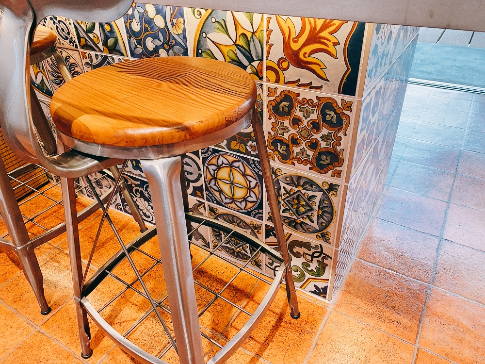 タイルに夢中になるあまり接写しすぎて何が何だかよく分からない感じですが、テーブル席と