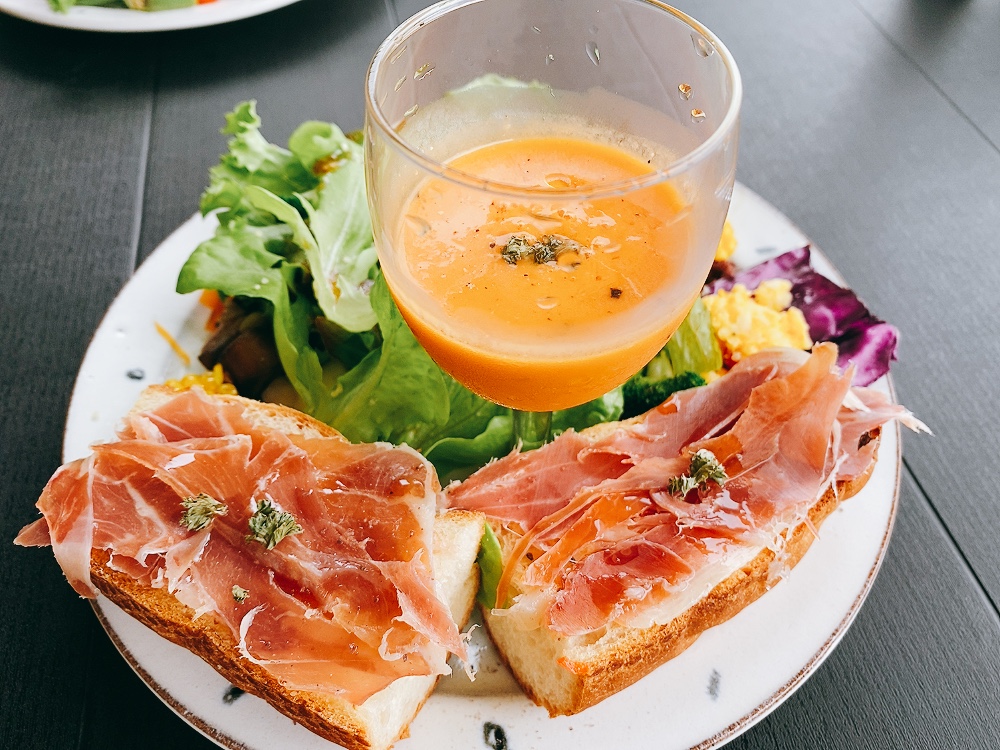 スペイン生ハムのパンコントマテ サラダガスパチョセット 1290円