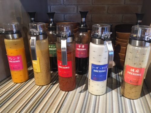 もちろんドレッシングもあり、こちらもシーザーサラダや胡麻ドレッシング、トマトやゆずしょうゆなど、種類豊富!個人的にコブサラダが好きな私は、コブドレッシングがあって嬉しかったです。