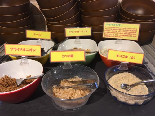 さらには、アーモンドスライスやかつお節などのトッピングまであり、ここまで用意されていれば、バッチリ自分好みのサラダ作りが可能!いろんな組み合わせを楽しみつつ、野菜をたくさん摂ることができます。