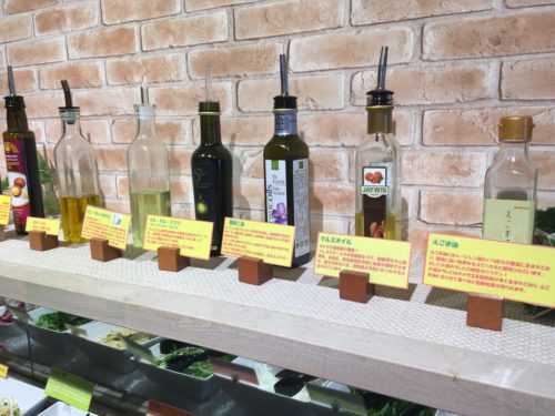 えごま油や亜麻仁油などの体に良いオイル類や、ハワイやペルシャの岩塩、キプロスの炭入り岩塩など、世界各国の珍しい塩がたくさん!オイルや塩で、シンプルに素材の味を楽しむのも良さそうです。塩は焼肉につけて食べることもできます。