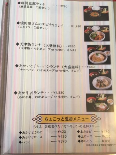 メニューは、カルビランチやホルモンランチなど、焼肉屋さんらしいランチが並びます。しかし…