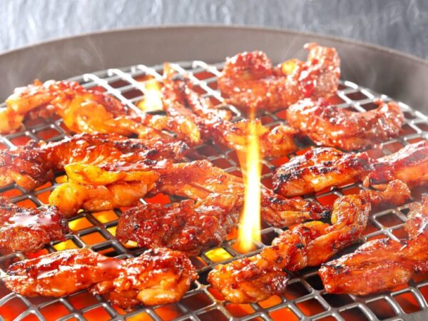 もう一つの名物は、赤から焼。秘伝のタレを揉み込んで6時間以上熟成させたお肉を焼き上げたメニューです。