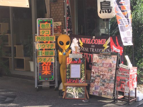 少し場所がわかりづらいですが、タピオカ屋さんの「琥珀」の隣の、黄色い宇宙人の看板から入った右手側にあります。