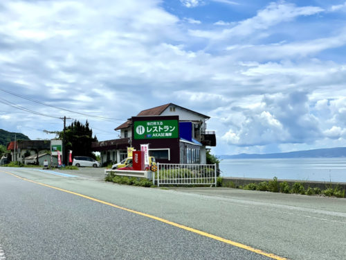 宇土半島、57号線を三角・天草方面に向かう途中にあるレストラン「AKASE海岸」。