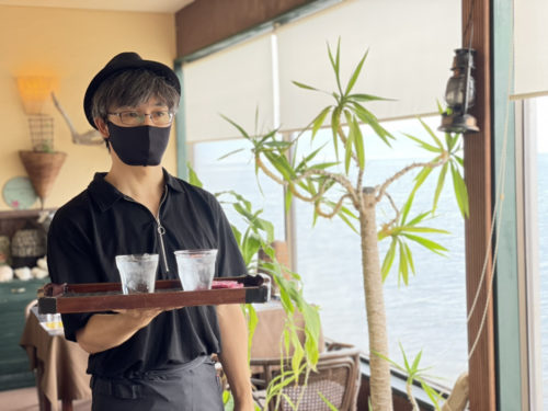 リゾート感のある店内。海が見える席が多く、開放感があります。