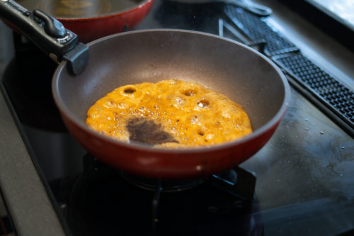 まずはフライパン。テフロン加工してあるものなら油は不要。
