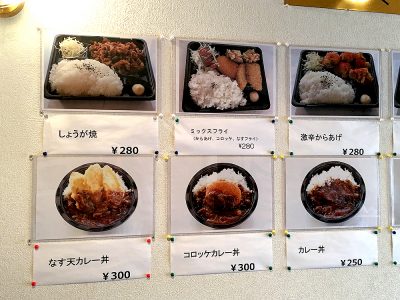 最安値はカレー丼の250円。それでも写真を見るとそれなりのボリュームも感じます。