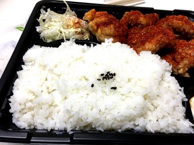 生姜焼きが売り切れでしたので、「激辛からあげ弁当」にしてみました。