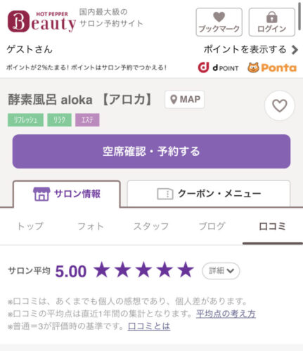ホットペッパービューティーの口コミが驚異の満点星5だったからです。