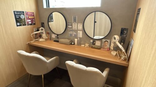化粧水なども置いてあるので、すっぴんになっても安心です。
