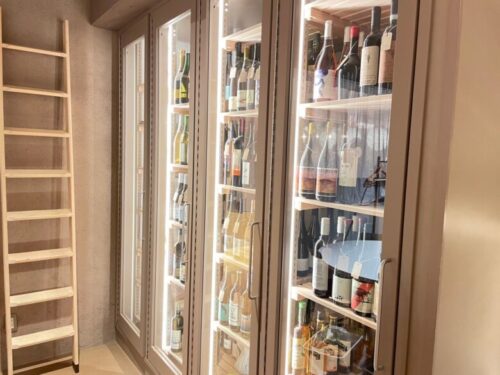 店内奥の冷蔵ケースには、厳選されたワインもたくさん並んでいて、ラベルを見るだけでも楽しめますよ。