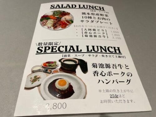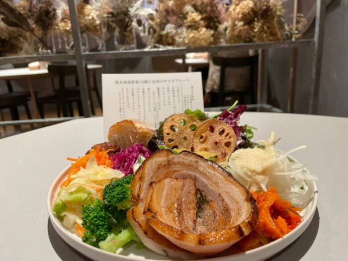 今回はランチで訪問し、熊本県産10種の野菜とお肉のプレート(香心ポーク・1,800円)をいただいてみました。