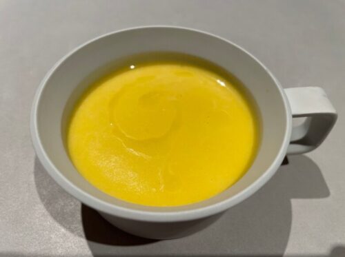 続いてのスープは、さつまいもとバターナッツのポタージュ。