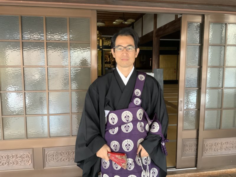 突然お邪魔したのに、お話をしてくれた浄土真宗本願寺派熊本別院の中津海智州さんです。