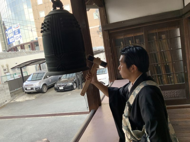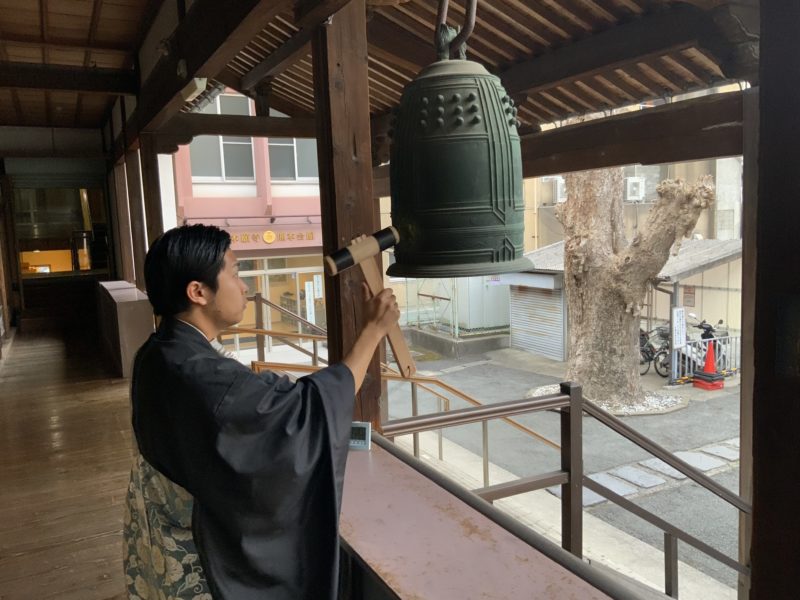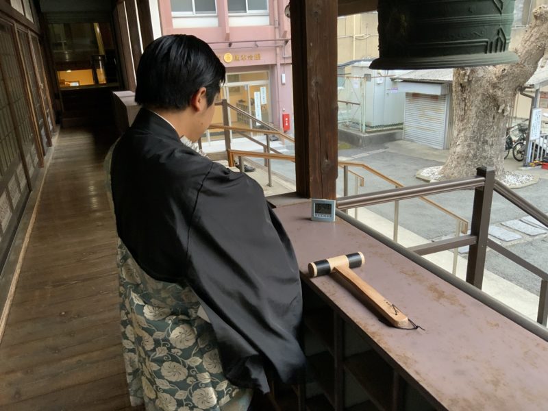 若いお坊さんが喚鐘の担当です。