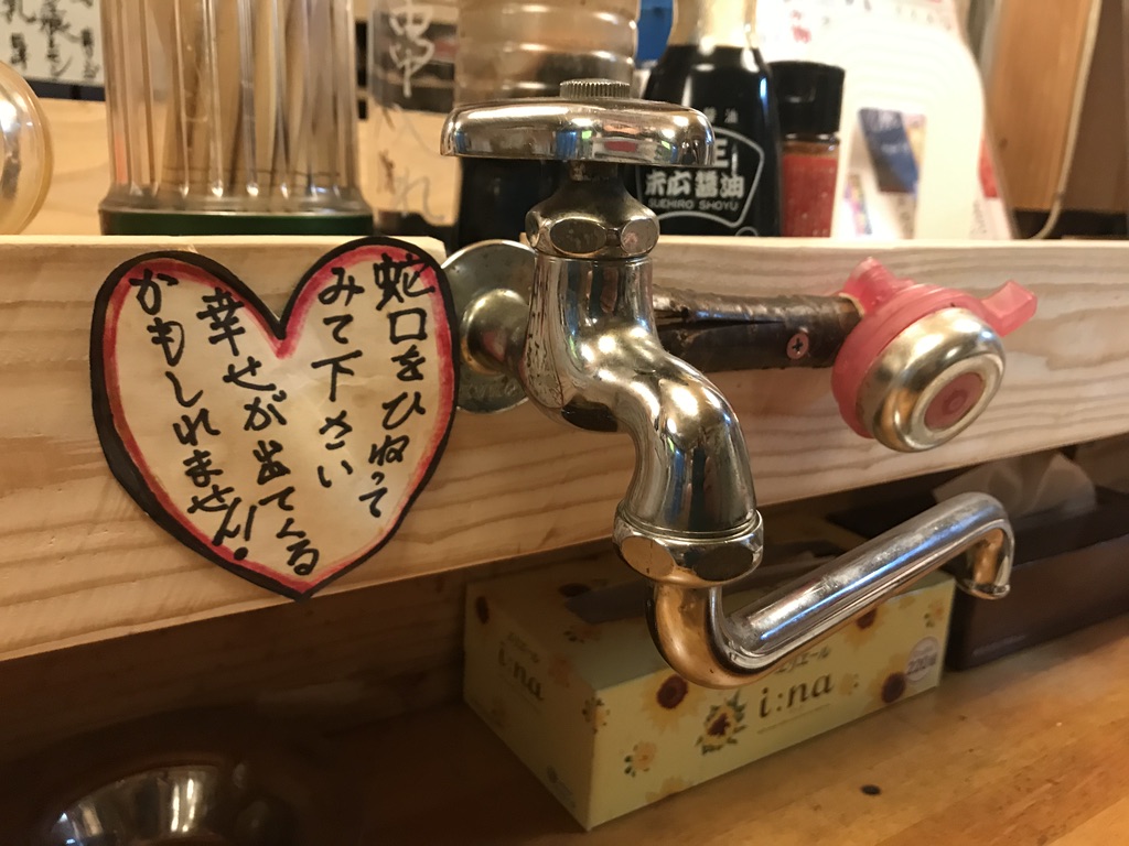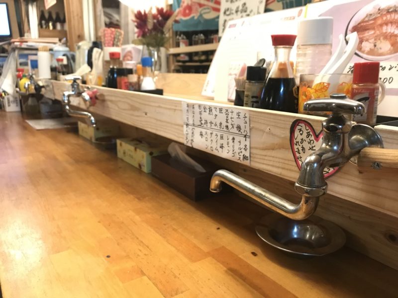 最初の写真で完全にネタバレしていますが、お店のカウンターに何故か蛇口がついてます。