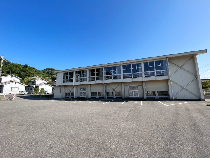 旧瀬戸小学校体育館に到着。こちらに車を停めていいそうです。車を置いて…