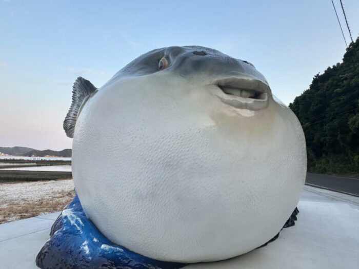 「日本一の無毒とらふぐ」のモニュメント。
