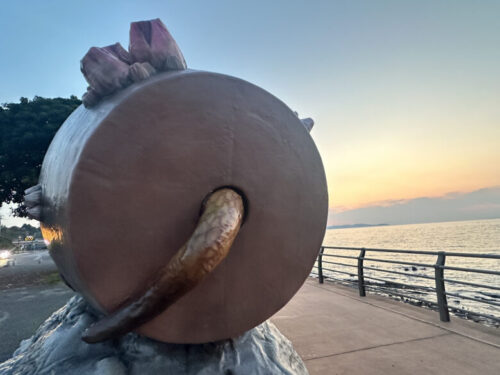 長部田海床路に鎮座するジンベエ像