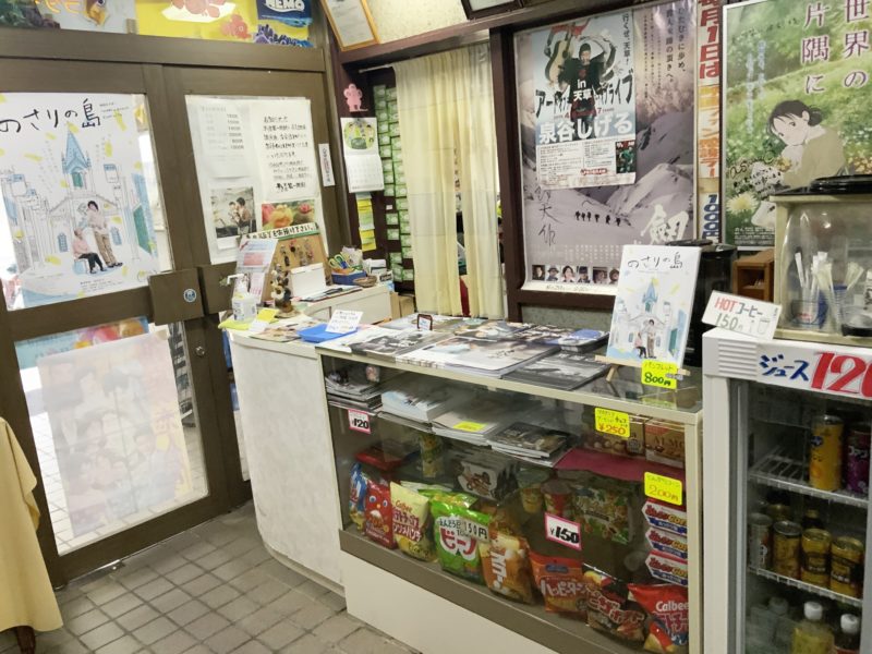 受付も昔ながら。ポップコーンとかじゃなくて、普通に袋菓子が置いてあります。ポテチとコーラほしい。
