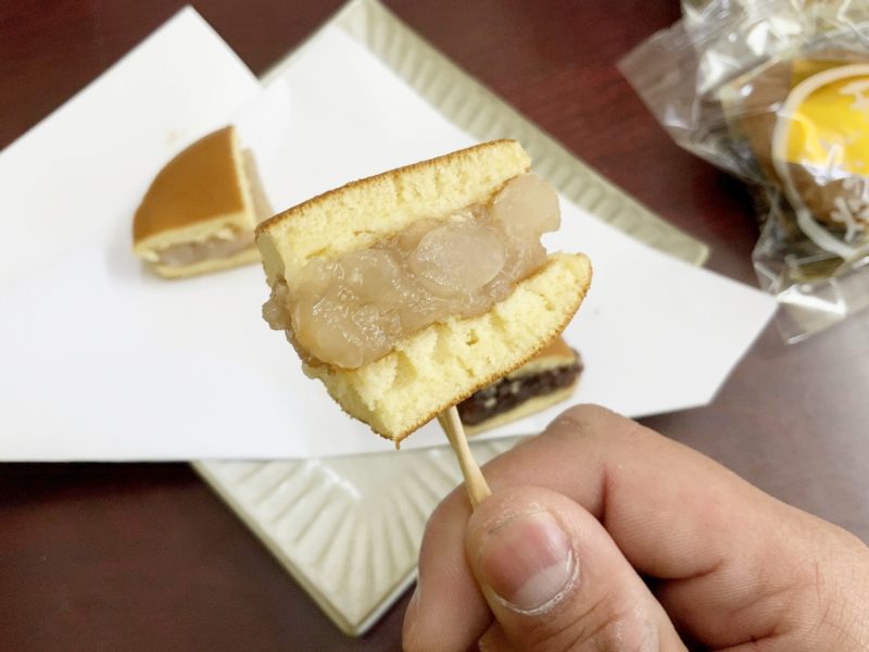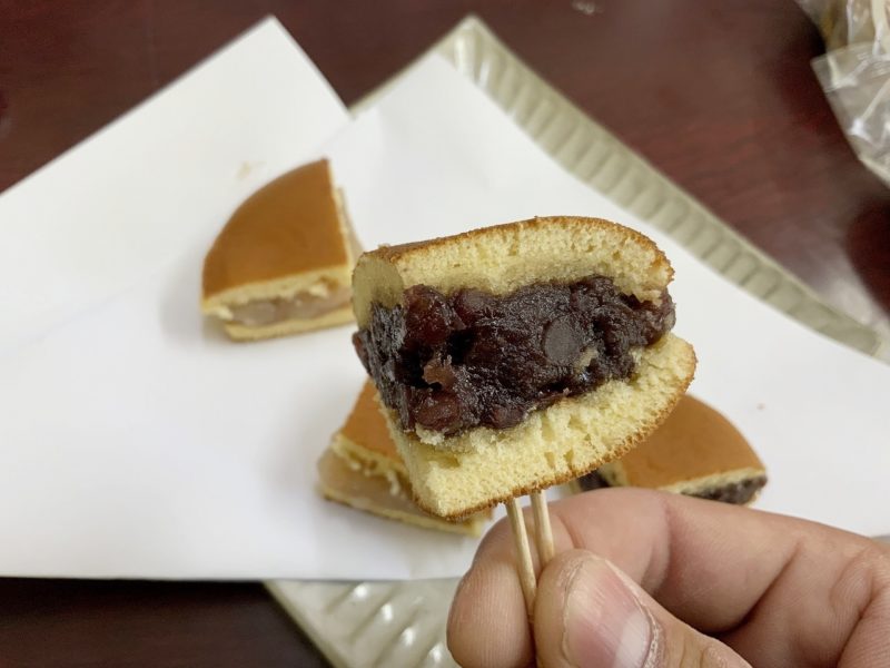 食べやすいようにと切ってくれたんですけどね、わかります?あれだけ溢れんばかりだったあんこ。見えていた端の部分より真ん中のほうがあんこ多いんです。
