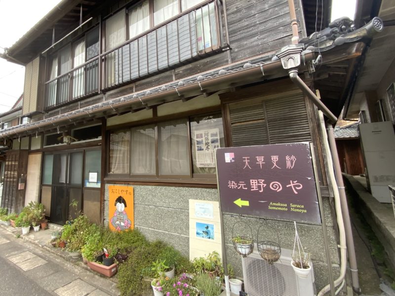 ここが、天草更紗染元「野のや」。普段はカフェとしても営業されているそうですが、今は時期的に休業中。