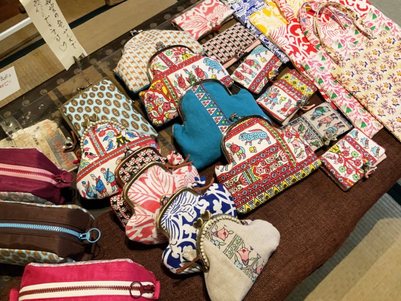 財布やポーチ、バッグなど「天草更紗」の製品も。南蛮文化を思わせるエキゾチックな…なんか、こう、天草感の凄い柄。