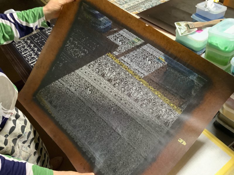 染め上がった更紗を乾燥させて出来上がり。これだけ細かい模様で、にじみもしないって凄い話ですよ、本当。