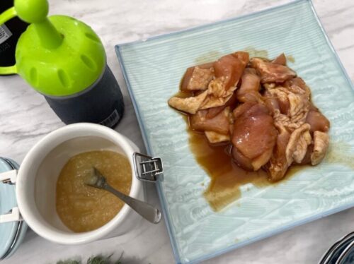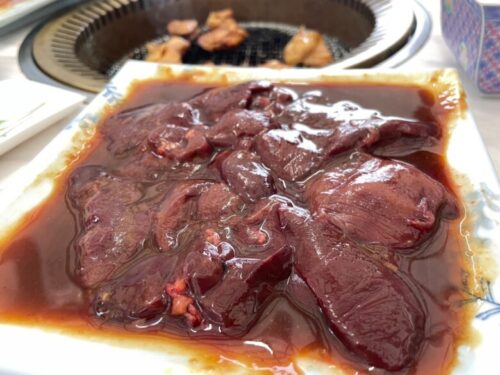 手作りの味噌だれに漬け込んである鶏肉です。オーナーさんたちが、三重県にある藤ヶ丘食堂という有名店の鶏焼肉が大好きとのことで、その鶏焼肉を天草でも食べられるように…と、同じ形で鶏焼肉を提供されているそうです。