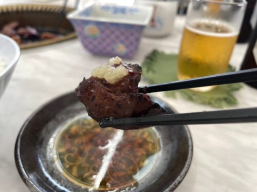 すりおろし生にんにくがテーブルに置いてあるので、これをつけながら食べるのも美味しくて、もう箸が止まりません!