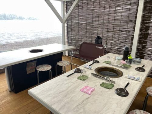お店の中は、焼肉テーブルが2台のみで、目の前は海!