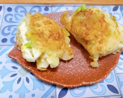 ソースのかかってないお好み焼きっぽい味ですが、ちくわから出汁が出てて、食べ応えたっぷりです。