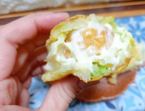 たい焼きの中にはたっぷりのキャベツとちくわ、マヨネーズ!