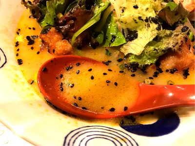 黒ごまのクリーミーな風味とピリ辛スープのハーモニーが絶妙です。