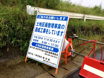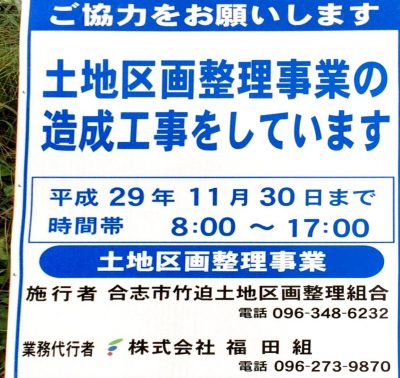 看板には土地区画整理事業の造成工事は11月30日までと書いています。
