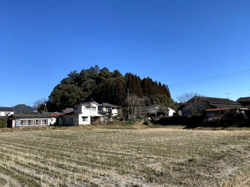 球磨郡相良村の田んぼの真ん中に、突如現れるこんもりした森。