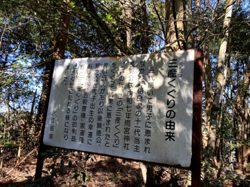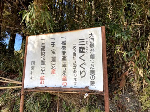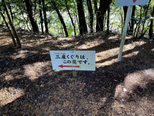 祠の奥に三産くぐりがあります。細かく立て看板が出ているので指示に従い進みましょう。