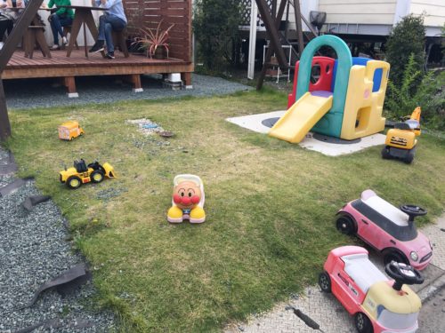 すべり台などの遊具もあって、小さな子どもも遊べる、のんびりしたなごやかな雰囲気が素敵!