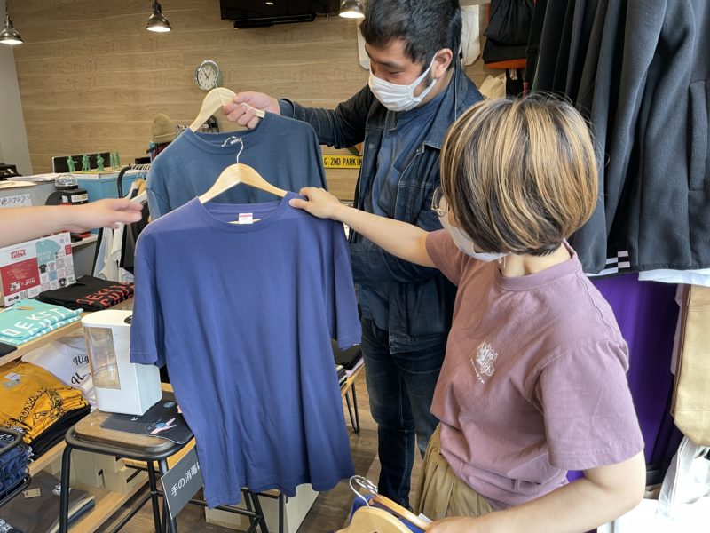 次に、プリントするシャツを選んでいきます。色や質感、サイズ感もその場で見れていいですね!