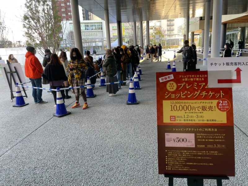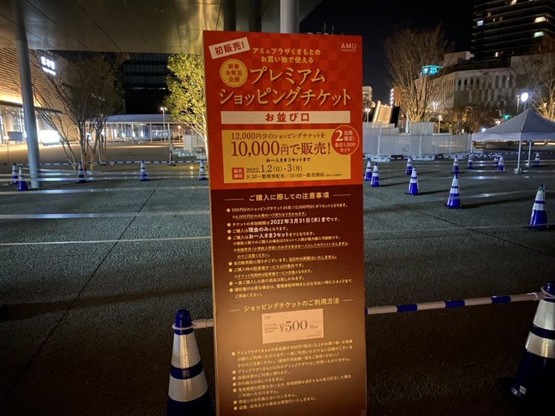 アミュプラザくまもとで使える1万2千円分のチケットが1万円で買えるお得チケット!2日と3日の2日間限定販売で各日1000セット限定!!これはすぐ売り切れるやつ!!今回はこれを買うことにしました。